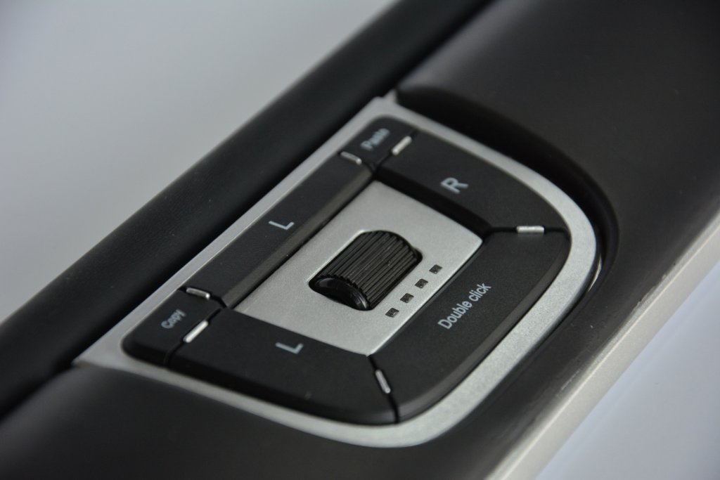 Placera centralt framför tangentbordet. Rotera för vertikal rörelse, skjut för horisontell navigering.